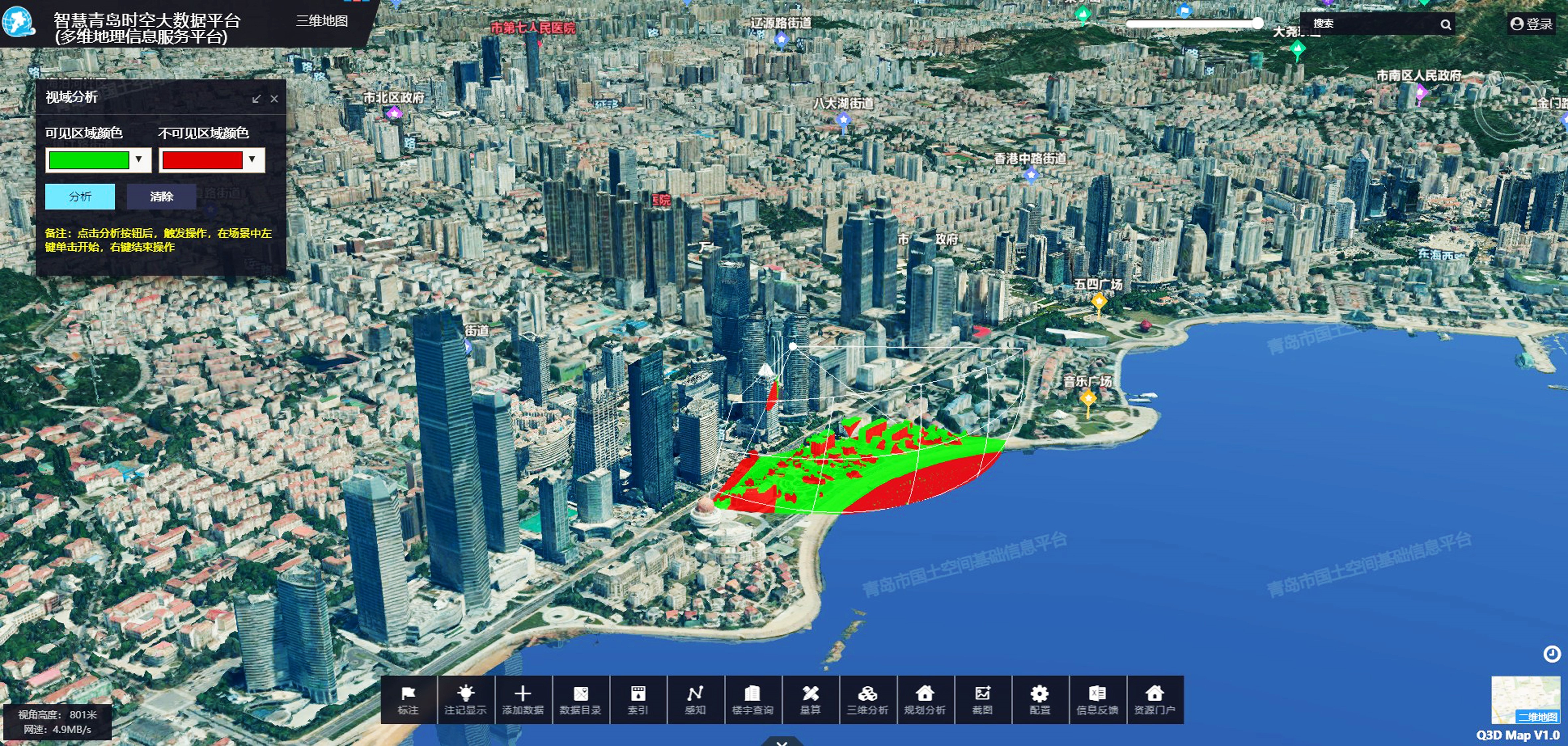 目前,实景三维青岛已成为城市云脑最重要的支撑平台,为全市提供唯一、权威的三维数字空间底座,并在经济社会发展中得到广泛应用。