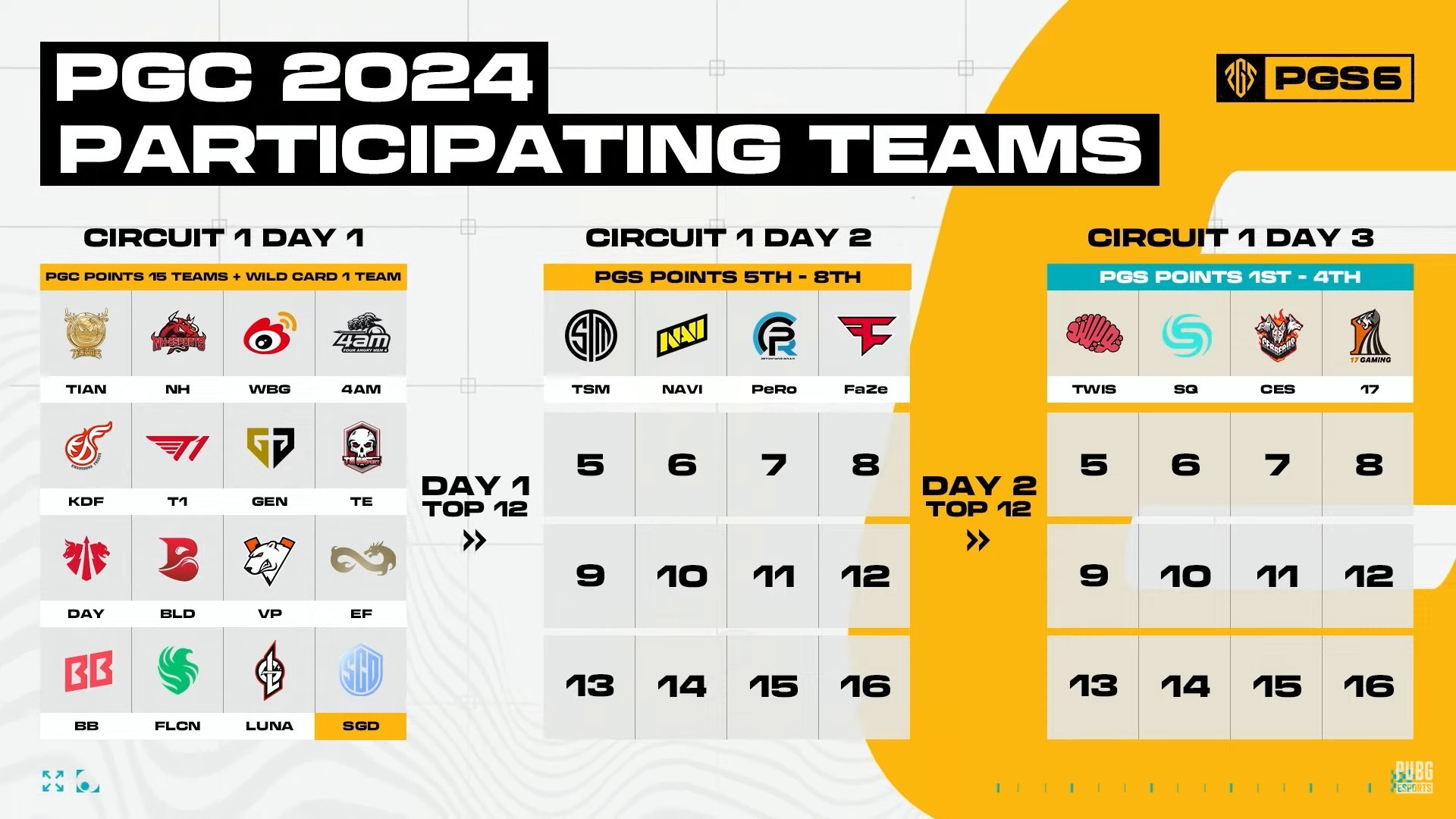 DAY3,PGS积分1-4名的队伍与晋级的12支队伍进行比赛。