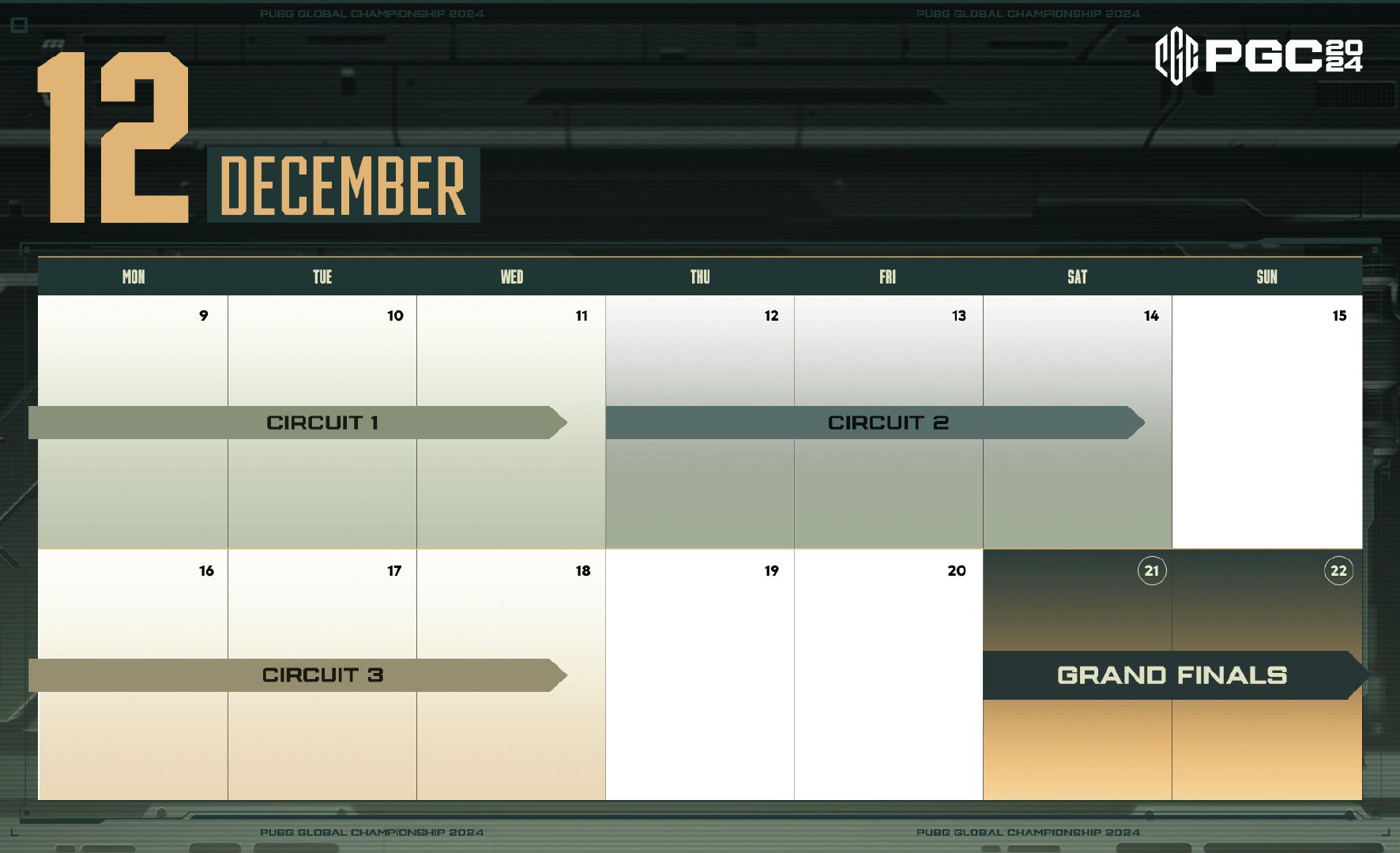 北京时间11月15日,PUBG赛事官方发布公告,2024年底的PGC(PUBG Global Championship)将采取三轮循环赛+一轮总决赛的赛制,最终总决赛将放弃赛点吃鸡制,回归传统积分制进行12局游戏。