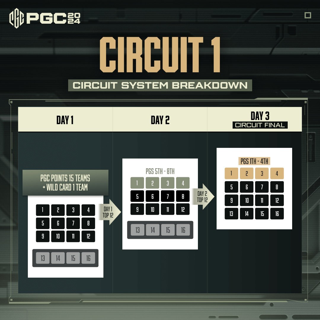 在第三轮循环赛结束时,所有循环赛中积分最高的前16支队伍将进入PGC 2024总决赛。