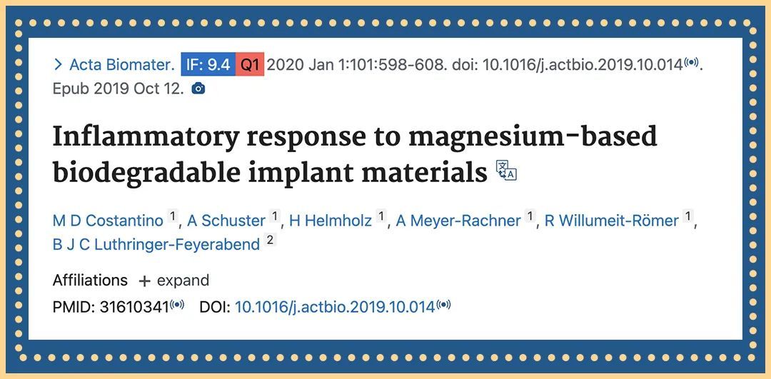 2020年,德国的科学家经过研究发现,在植入人体的材料中,镁基生物材料,能够更快地消退炎症,并且让组织修复更快。