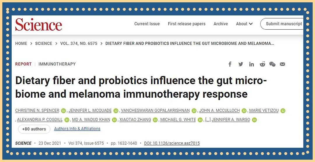 近日,在《Science》上发表的一项研究,增加了我们对饮食习惯如何影响微生物群和免疫治疗临床结果的理解。适量增加高纤维的饮食,可以通过影响肠道微生物群,帮助改善一些接受免疫检查点阻滞剂免疫治疗的晚期黑色素瘤患者。