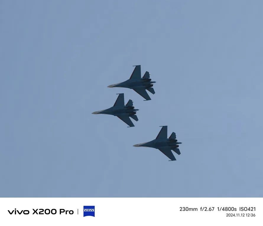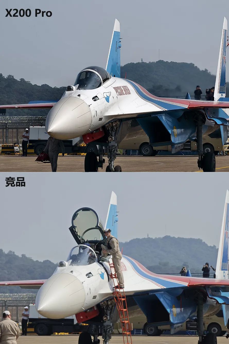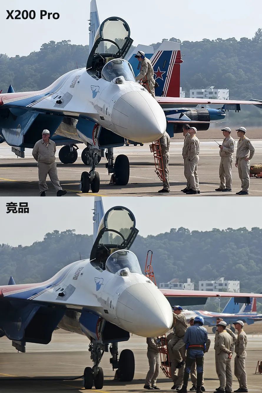首先是vivo X200 Pro与小米15 Pro在珠海航展上同场景对比,后者使用的是120mm徕卡潜望长焦,但同样提供了10X长焦模式(240mm),在拍摄时X200 Pro是基于抓拍模式。