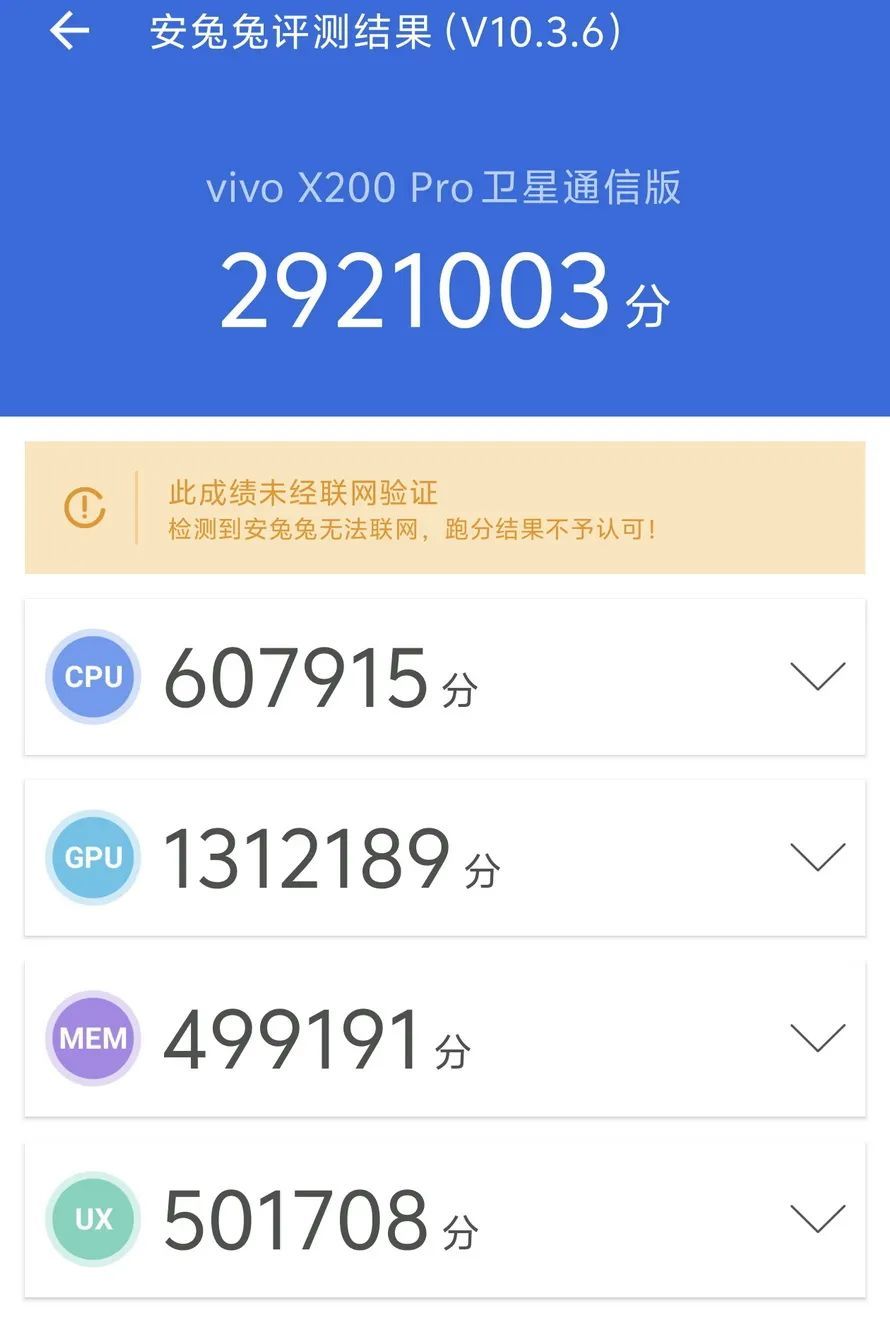 除了摄像头外,vivo X200 Pro在其它方面也是可圈可点的,搭载了MTK天玑9400处理器,在安兔兔中跑出了2921003的高分,6.78英寸的使用了全等深微四曲屏,四边边框只有1.63mm,电池容量达到了6000mAh,有北斗卫星通信版本可选。在上市一个月后,vivo X200 Pro依然是一款非常能打的机器。