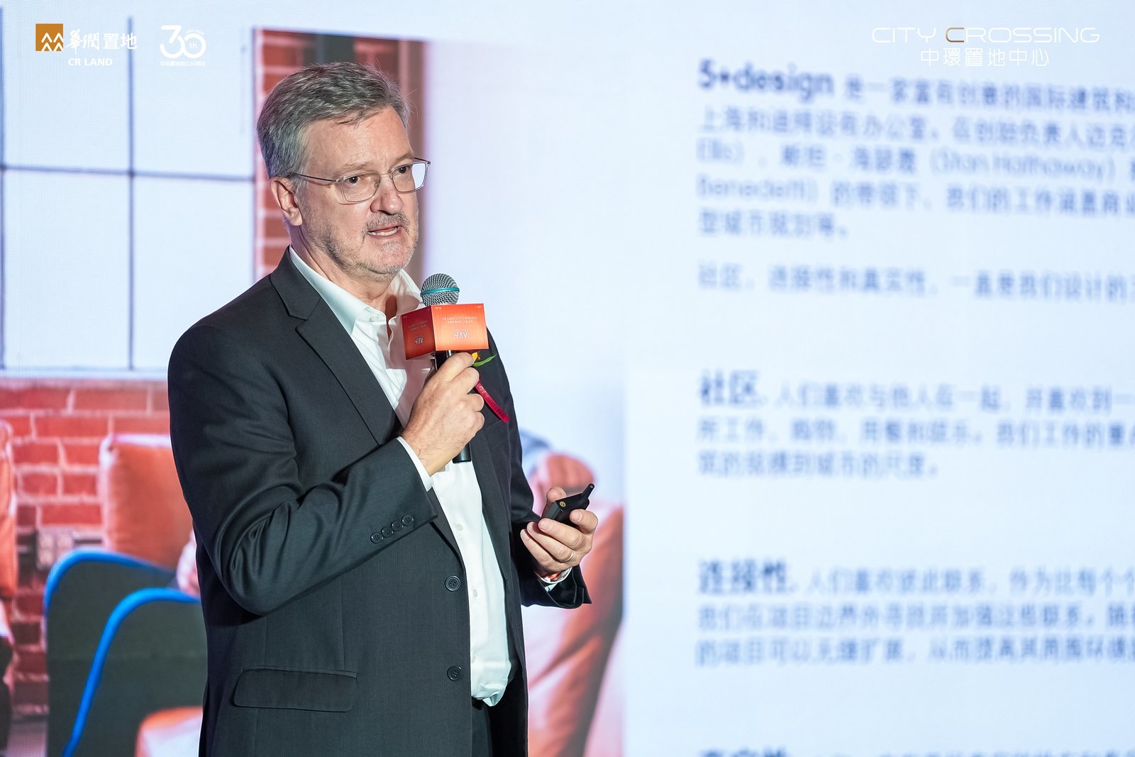 5+design的设计师Michel Ellis,现场分享了宝山万象汇藏宝于山、寻宝花园的设计理念,将城市体验与自然元素相融合,延伸公共空间,凝结成“隐藏的宝藏”。以一座复合型综合体大城,万象系商业、海派精奢住区、超高层办公塔楼无界汇集,实现“生产+生活+生态”的“三生”融合,将未来公园城市植入其中,建设站城人一体的TOD复合生活场,指向未来的造城实践。将“交通、商业、公园、办公、居住”五大业态一体化集成,引领北中环复合综合体方式。