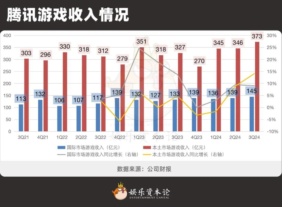 上周,在业内均不看好的时候, 腾讯交出的三季报答卷堪称 打脸 :营收1671.93亿元,同比增长8%;净利润532.3亿元,同比增长47%。分业务来看,增值服务业务(主要为游戏业务)以826.95亿元、同比增长9%跑出了2024年以来的最亮眼增长(一二季度同比增长分别为-0.9%、6%)。