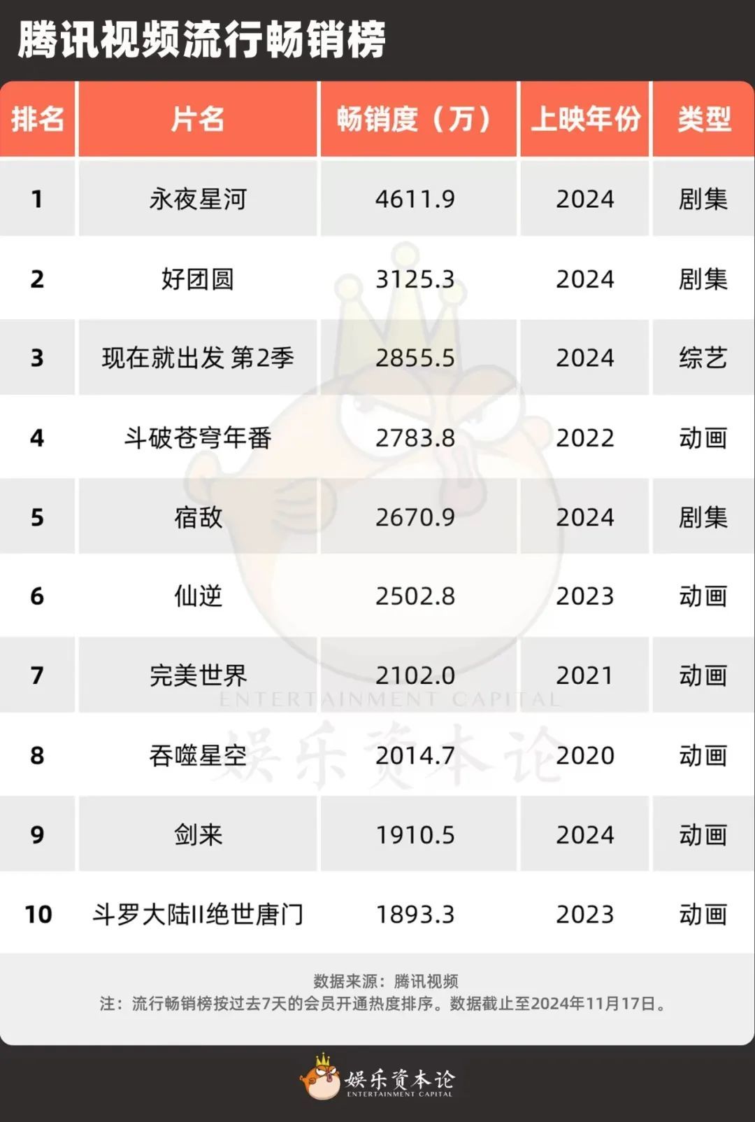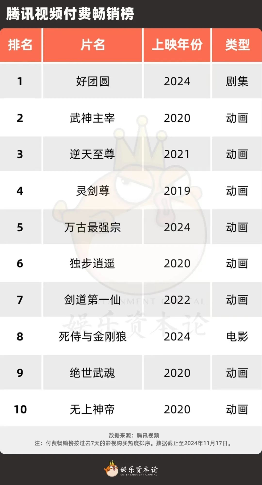 事实上,整个2024年长视频领域都遇到了挑战,有行业人士告诉娱乐资本论:“整个长视频水位掉了25%以上”。动漫虽然不声不响,却一直是水位的稳定器,这也是腾讯视频相比其他三家最大的优势所在。
