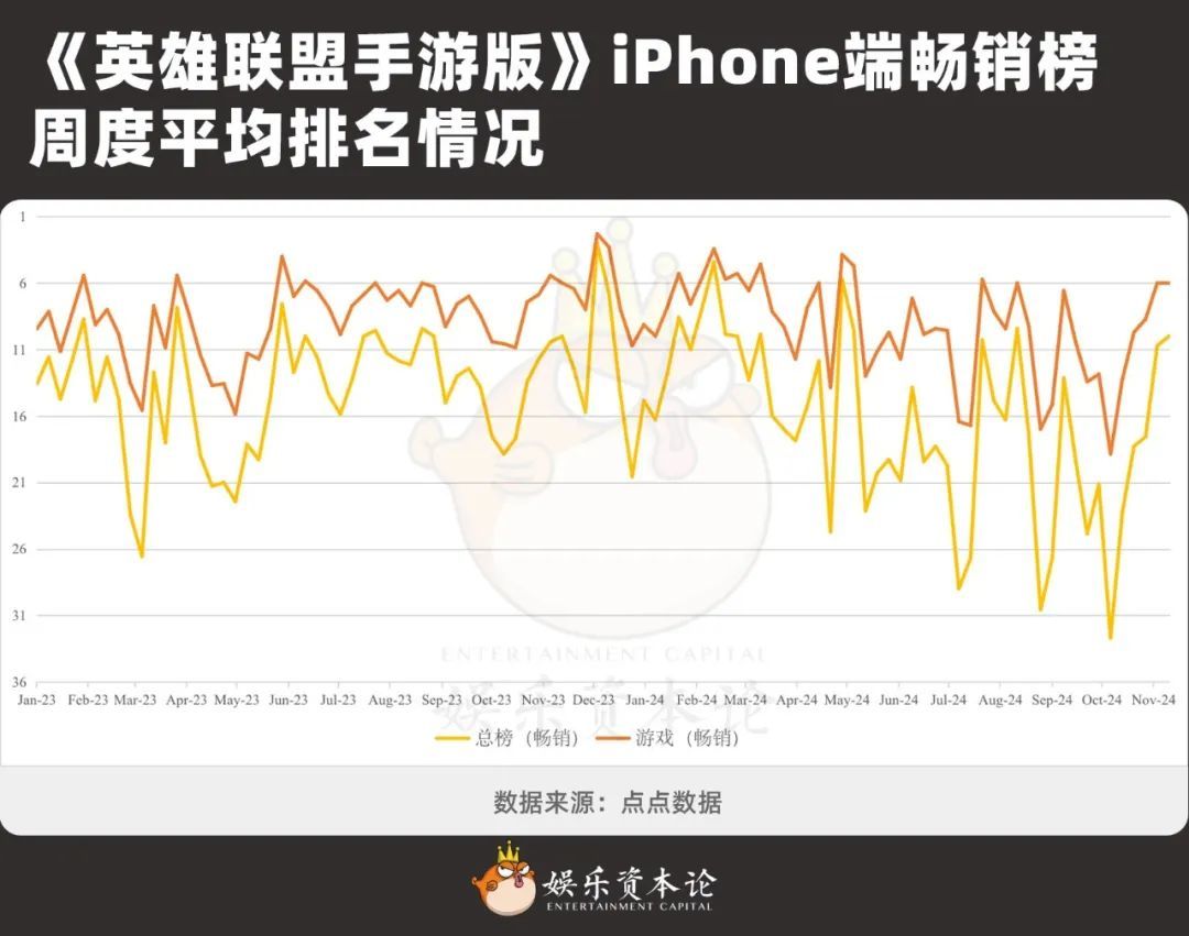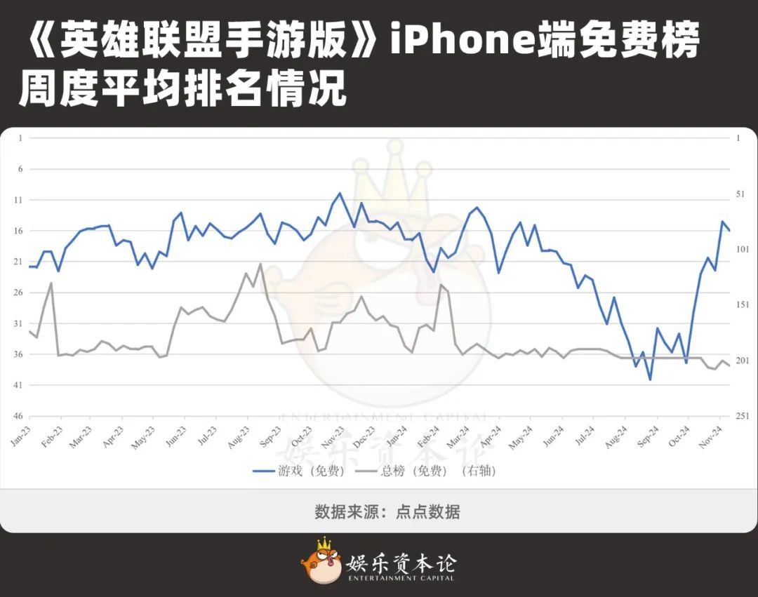 11月以来,《英雄联盟手游版》在免费榜和畅销榜的排名都大幅前进。然而,这一季度的《双城之战》,就目前来看只能“续火”,仍未“出圈”。截止至11月17日,《英雄联盟:双城之战第二季》在腾讯视频热搜榜中排名第13名,流行畅销榜中排名14名,不及《斗破苍穹年番》、《斗罗大陆II绝世唐门》等国漫。