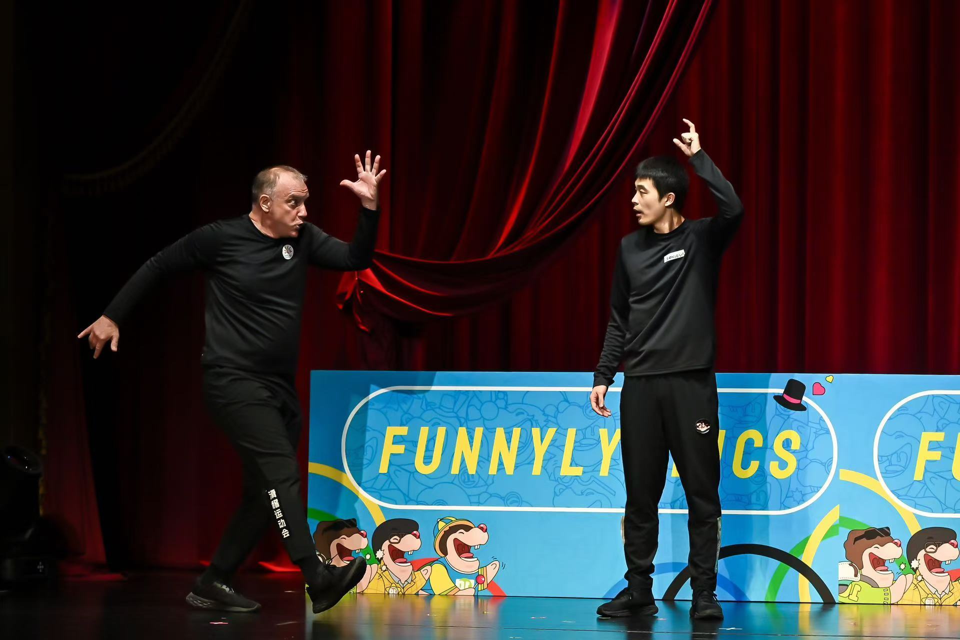 当晚,全球喜剧人汇聚兰心大戏院,现场热闹非凡。世界默剧协会主席马尔科·斯托扬诺维奇带来了以法国奥运会为灵感创作的默剧,逗笑全场,与他搭档的是上海滑稽剧团演员何立鸣。上海国际喜剧节总监喻荣军介绍,本次开幕演出由喜剧节与上海滑稽剧团共同策划,一改以往的单一剧目,而是以“喜剧秀”的形式,为观众献上一场欢乐派对。这既是墨尔本、蒙特利尔等国际喜剧节的常见开幕形式,也是一场国际喜剧文化交流盛宴,为观众展现出符合当下潮流的、全球喜剧文化的多样魅力。