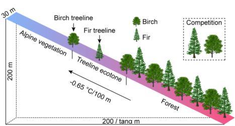 研究团队利用树线模型模拟进一步发现,随着持续变暖,冷杉的爬升将持续加速,而糙皮桦的更新下降将导致种群密度降低,树线爬升更加受限,高排放情境下甚至会出现树线后退,预示着变暖背景下冷杉可能快速取代糙皮桦成为先锋树种,加速演替进程。这一发现对于预测未来森林组成、结构和生态系统服务功能具有重要意义。