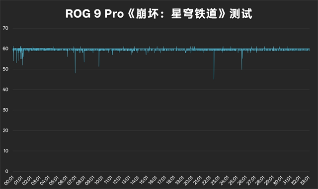 最后测了一把《崩坏:星穹铁道》,同样是开启最高画质+60fps,在星槎海中枢跑图,半个小时平均帧率59.74,平均功耗4.5W,最高温度41.8℃。