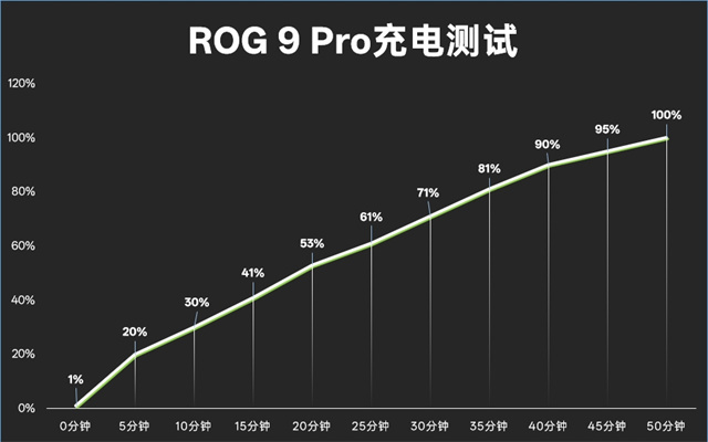 同时ROG 9 Pro搭载了一个5800mAh大电池,能够满足更长时间的游戏需求,65W有线快充和15W无线充电,经过实测,从1%充至100%用时50分钟,不到一小时的不能时间可以接受,配合大电池就有着非常不错的体验。