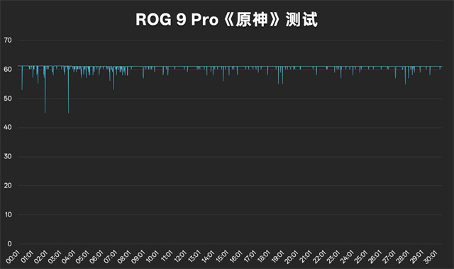 只看《王者荣耀》自然不够,必须安排一波《原神》,开启最高画质+手动60fps模式,在须弥城中不断移动,模拟比较极端的情况。半个小时的测试,平均帧率60,平均功耗4.5W,最高温度41.4℃,如此稳定的帧率表现确实只有游戏手机才能做到,另外它的功耗和温度控制也很到位,长时间游戏依旧稳定。
