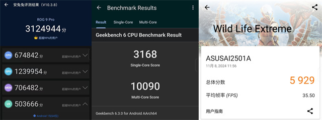 ROG 9 Pro在安兔兔V10也有接312万+成绩