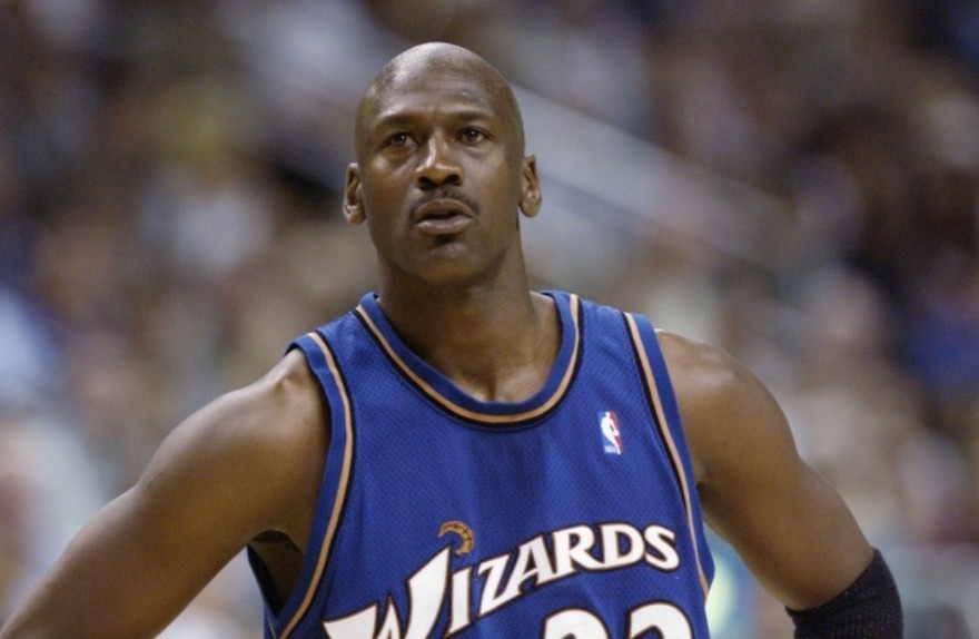 乔丹最终以40岁的年龄彻底退役。在华盛顿奇才队的最后两个赛季,他在142场比赛中场均贡献21.2分、5.9个篮板和4.4次助攻。