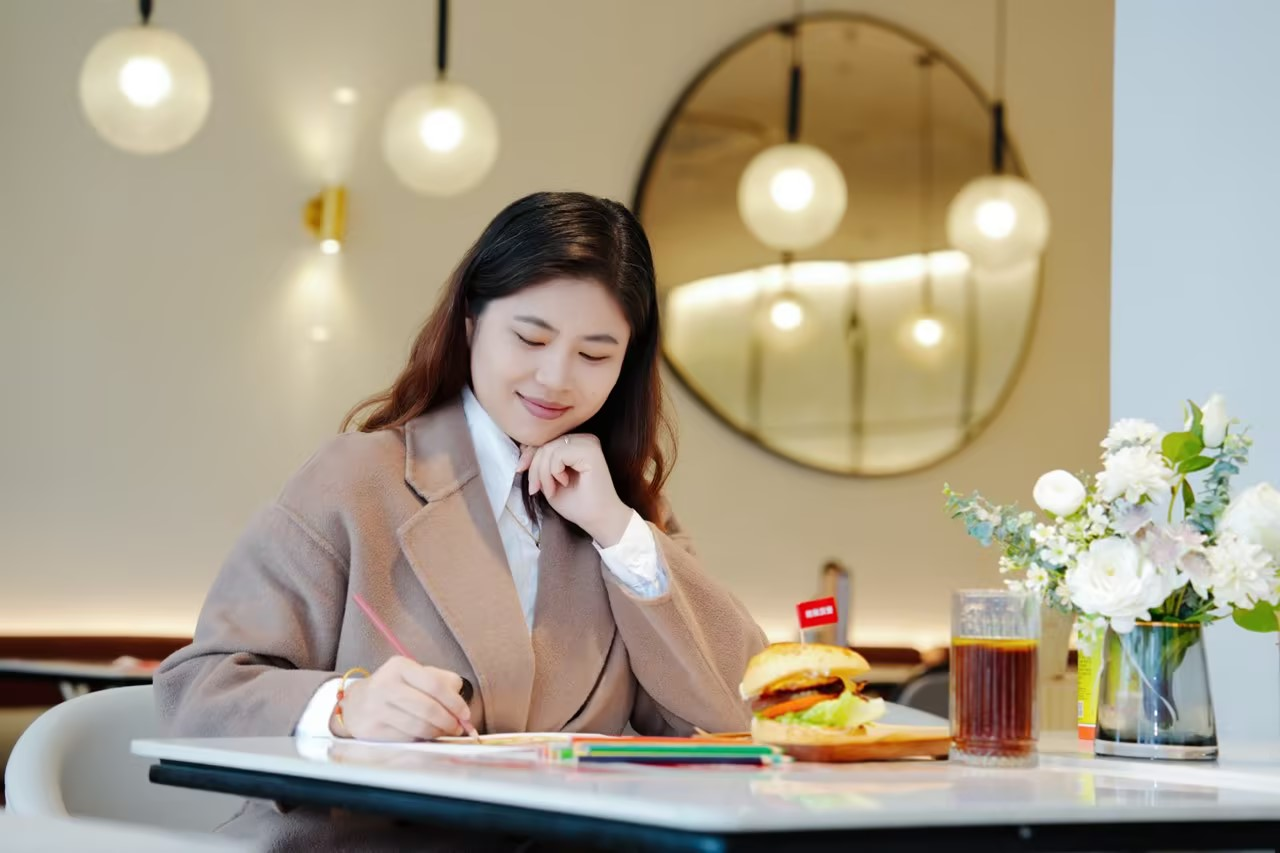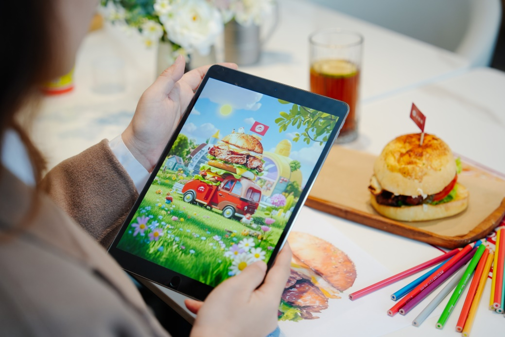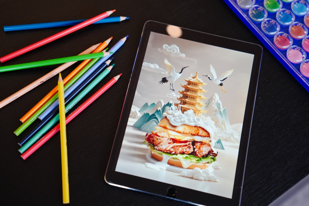 试吃活动中,插画师卷卷在看到诱人的比萨堡时,灵感乍现。她先是精心手绘比萨堡,而后运用 AI 进行二次创作。在她的作品中,有可爱到让人移不开眼的必胜客比萨堡餐车,仿佛能载着美味驶向世界的每个角落。还有将武汉地标黄鹤楼与汉堡巧妙融合的奇妙创作,古典与现代美食元素碰撞出了别样的火花,展现出了独特的魅力。