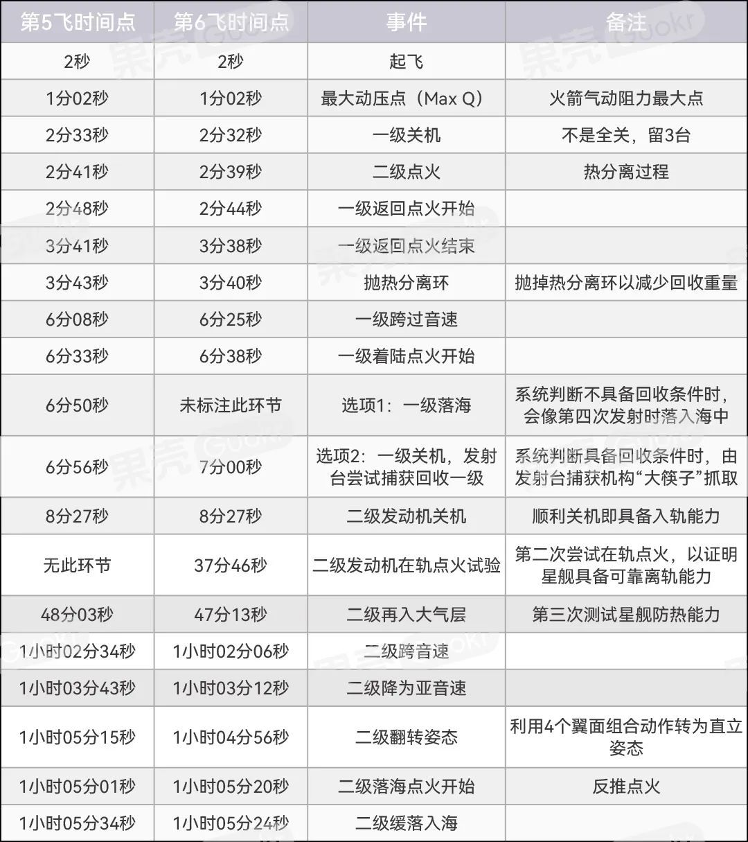 星舰第5次和第6次发射时序对比 | 数据来源:SpaceX