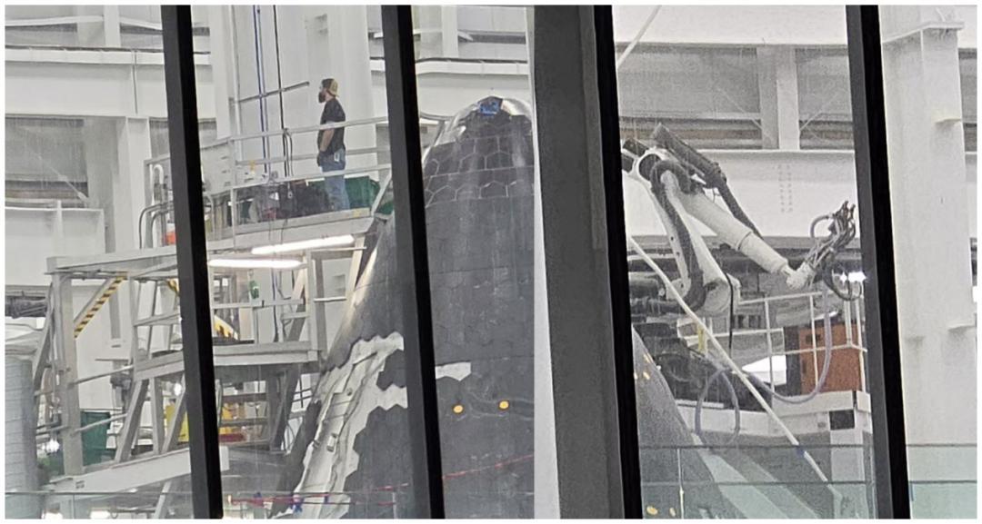 有媒体拍到厂房内机械臂已经开始用于隔热瓦的敷贴 | NasaSpaceFlight