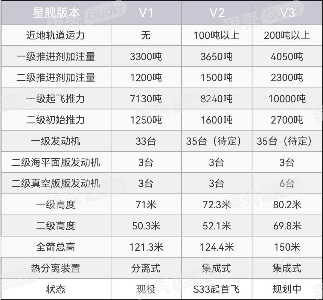 星舰各版本数据对比 | 数据来源:SpaceX