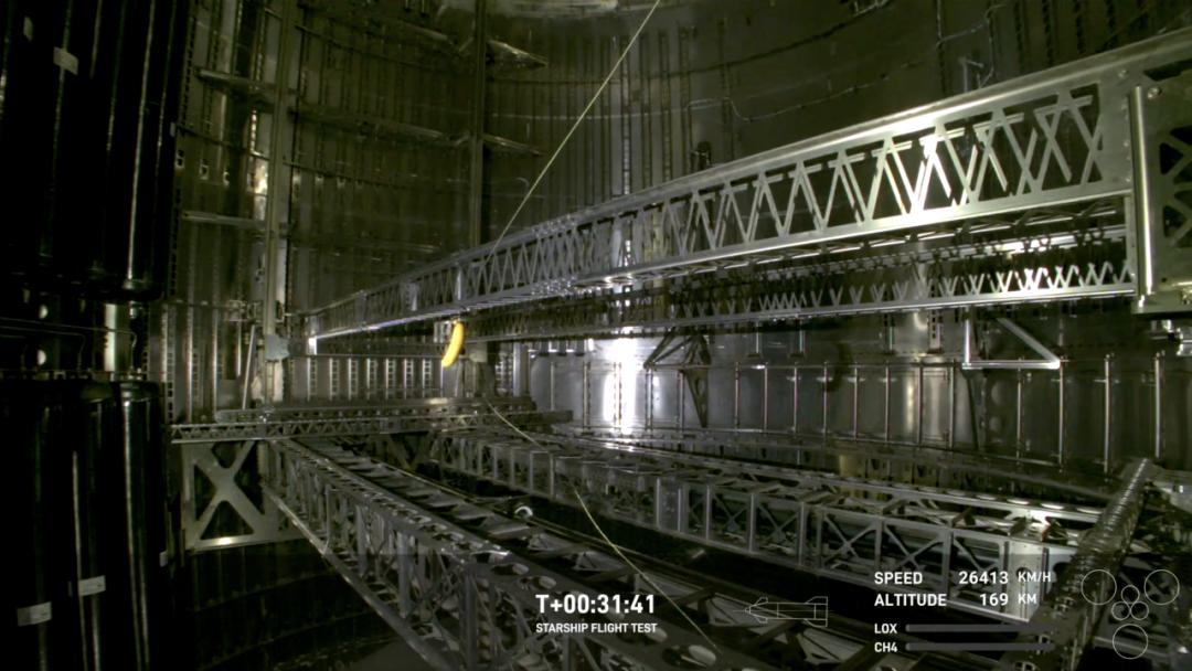星舰二级滑行过程中,香蕉在舱内飘浮 | SpaceX