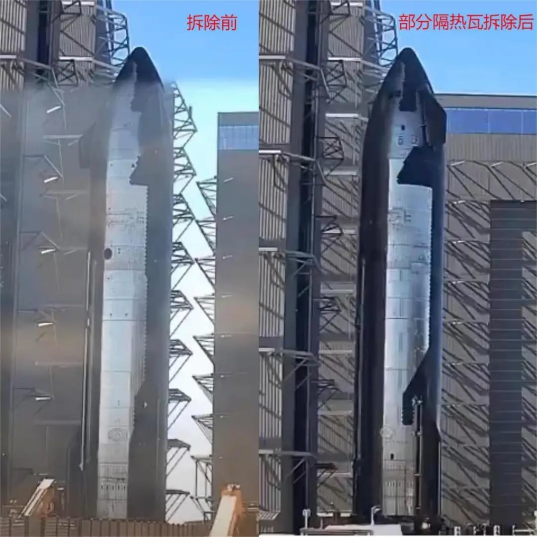 目前的星舰仍在迭代完善,因此多见的是针对弱点的“补强”和“加法”,然而本次发射中,基于此前星舰飞船3次再入的经验数据,SpaceX已经开始做减法了。