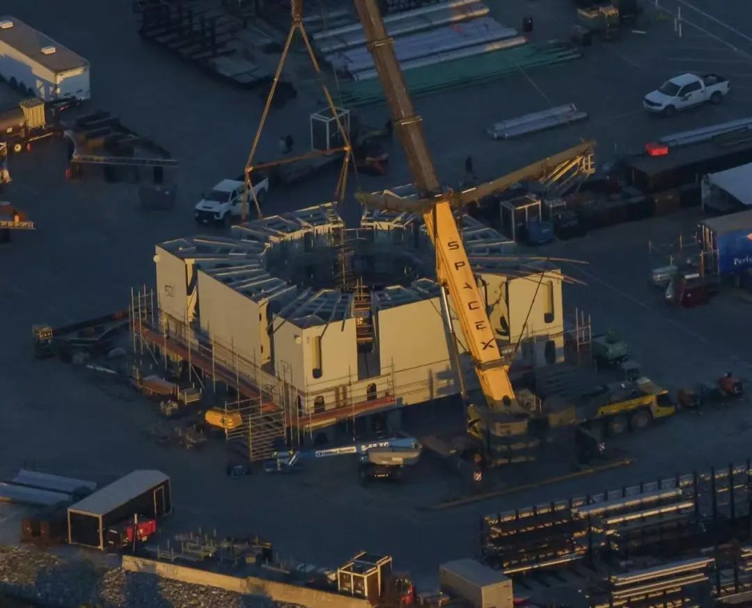 用于第二座星舰发射台的主要承力构件正在组装,考虑到未来V3版星舰将在这座发射台起飞,起飞推力将高达万吨。