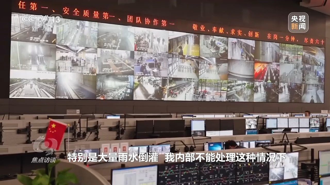 上海轨道交通路网运营调度指挥中心值班总调度长 朱伟:我们的路网级运营调度员会和外部气象部门、防汛办等保持紧密联系,特别是大量雨水倒灌,内部不能处理的情况下,我们也会申请外部支援,消防、排水的防汛水务部门等会支援我们,对站外进行排水。