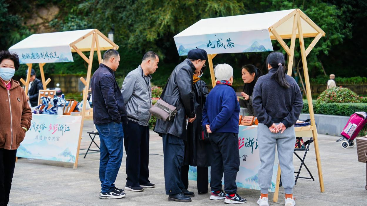 活动现场还设置了径山点茶、瓶窑风筝、余杭纸伞、中泰竹笛、百丈竹刻、良渚剪纸等10个余杭特色非遗摊位,摊位上精美的手工艺品展示和传统非遗体验,让市民们近距离感受到了余杭非遗文化的独特魅力。
