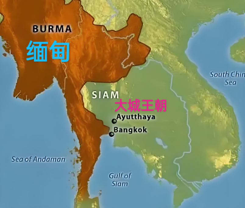 暹罗再度复国,并且刚建立了一个“大泰老民族国家”没过多久,东南亚的局势就发生了新变化,与之前泰、缅两族大战相比,这里新增了域外玩家。