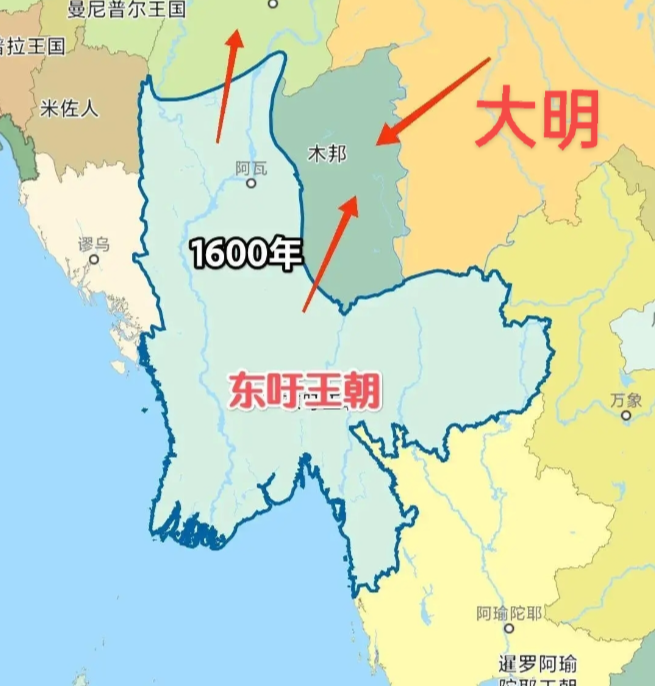 ▲得意而忘形的缅甸,大举向北用兵,陷入与明朝争夺云南的长期战争中,无暇东顾