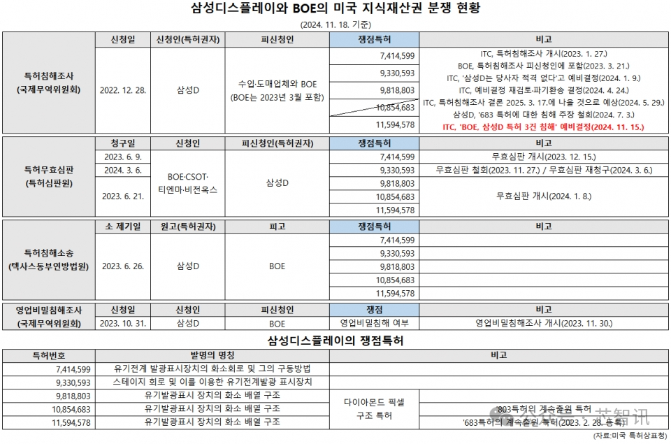 资料显示,三星Display于 2022 年 12 月向 ITC 提起了针对 17 家美国进口商和批发商的有机发光二极管 (OLED) 专利侵权调查案。随后,京东方于 2023年3月被列为该案的被告。