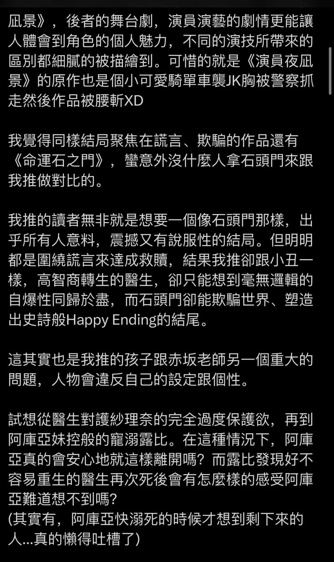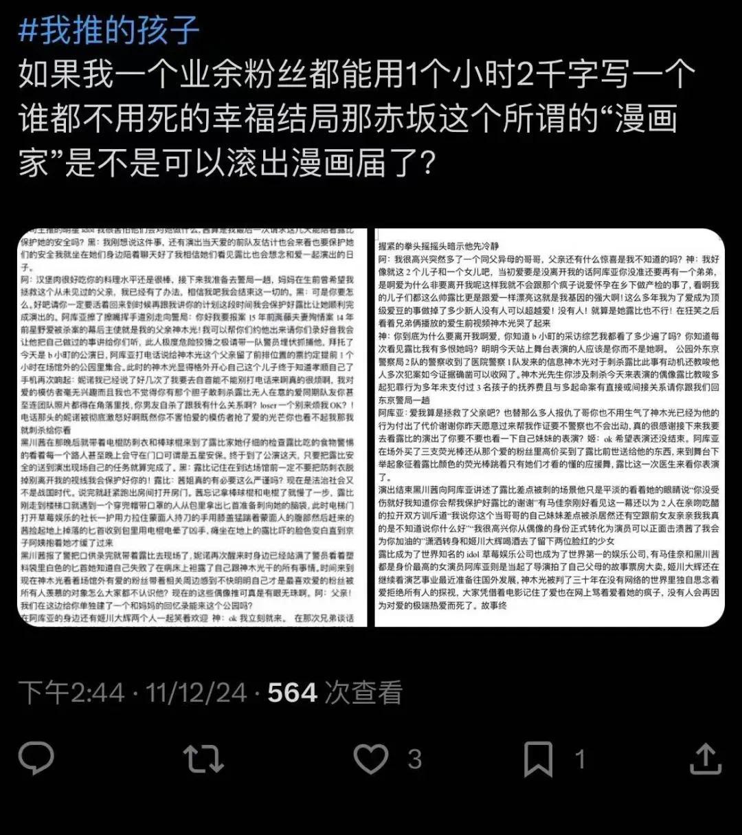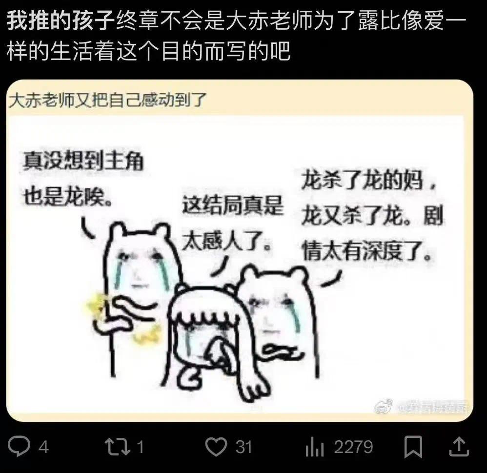没想到在《我推的孩子》中,赤坂明更是变本加厉,直接把男主写死了,因此也出现了不少网友吐槽他太不尊重笔下角色了。