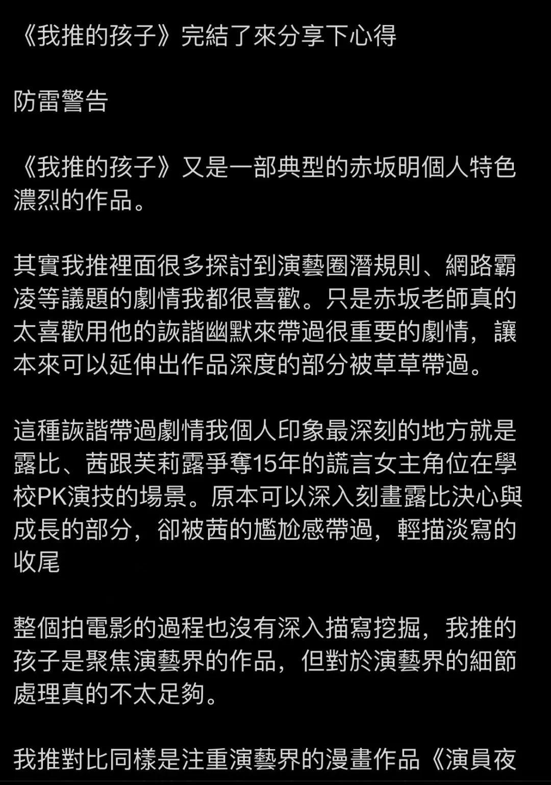 网友辣评,《我推的孩子》“像是一个精美的PPT”,每一帧都很精美,但就像是没有动画效果的PPT,没有演讲的人,只有一个照稿念词的参与者。看久了自然觉得平淡无味,问题关键在谁那,很明显了吧。