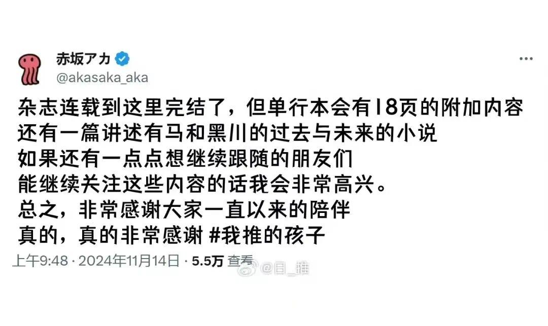 《我推的孩子》是赤坂明担任原作、横枪萌果负责作画共同完成,近期他俩的合作要暂时告一段落。因此多数粉丝和cp粉是抱着满满期待的心情来迎接完结,但动漫的结尾确实让人哑巴吃黄连——有苦说不出。