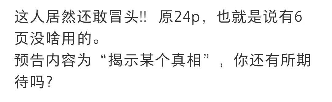 然而,考虑到之前的情节,多数粉丝们并不会抱有期待,想想几个加页就能彻底反转整个故事也不太可能。