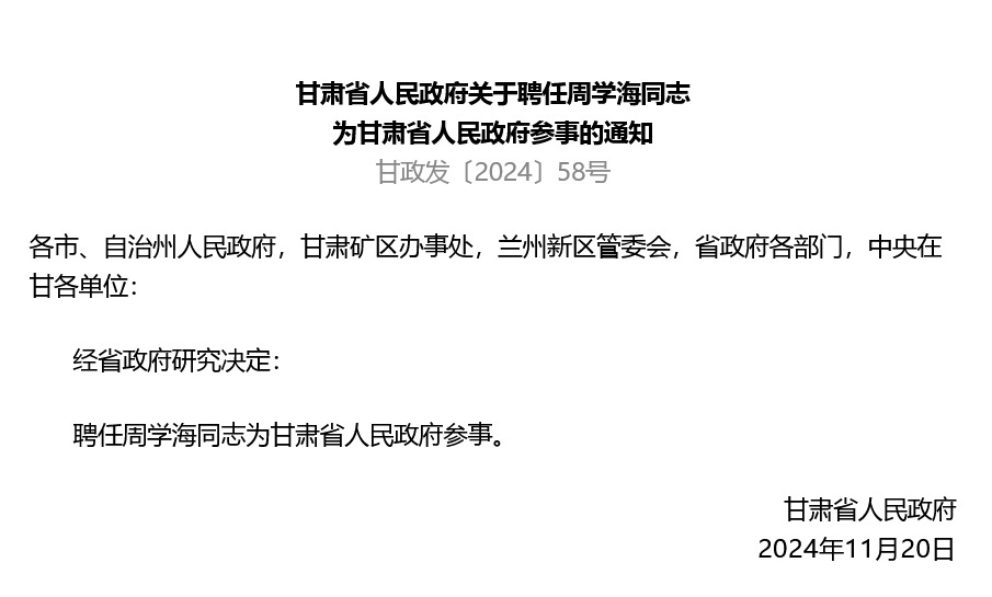 11月21日,每日甘肃发布甘肃省人民政府聘任通知。