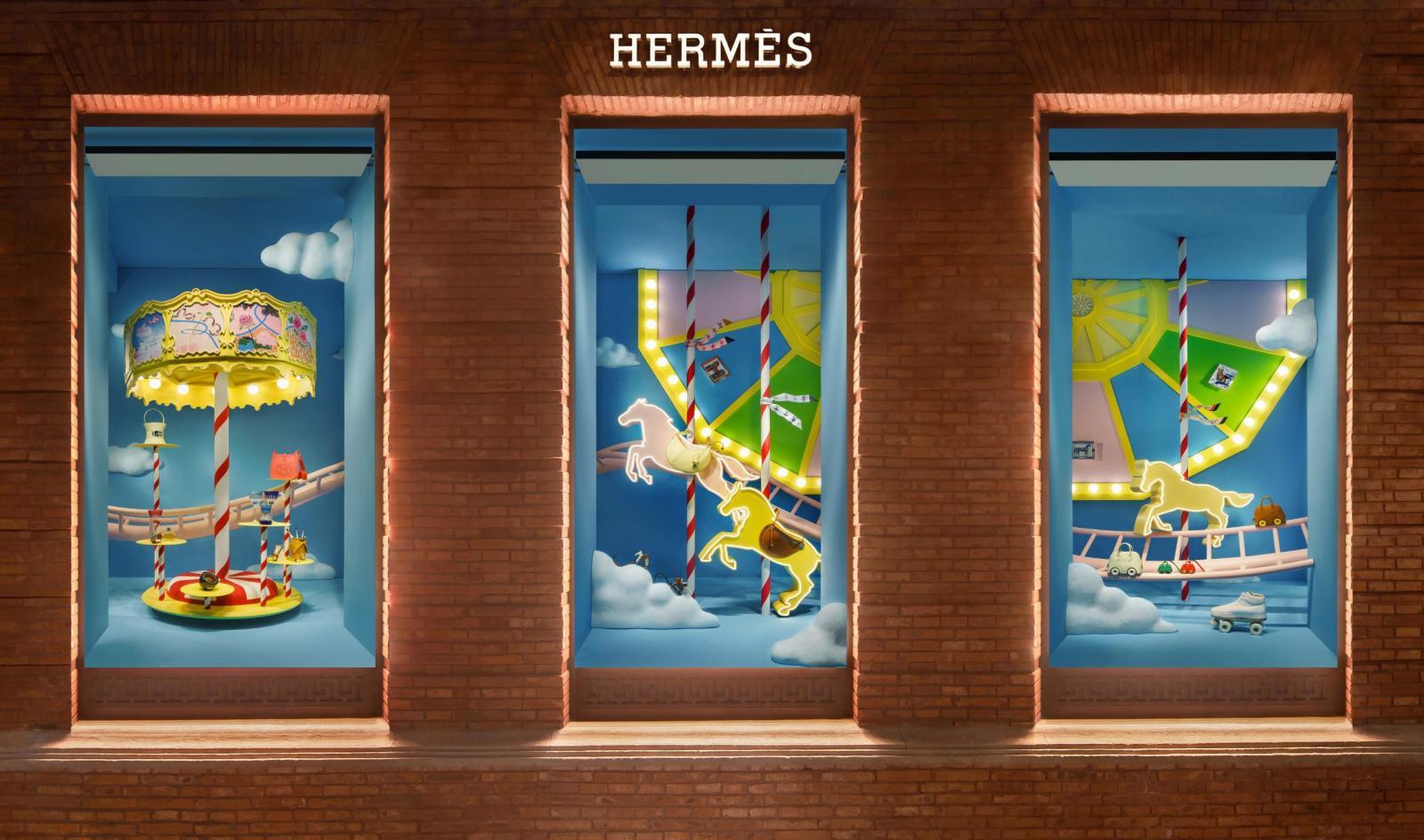 近日,爱马仕正式发布由美国艺术家EJHill先生倾力打造的冬季主题橱窗《“骑”梦游园》,为上海“爱马仕之家”带来一座充满奇幻想象的冬日乐园。该橱窗以过山车、摩天轮和旋转木马为核心元素,呼应了2024年度主题“源于福宝的爱马仕精神”。