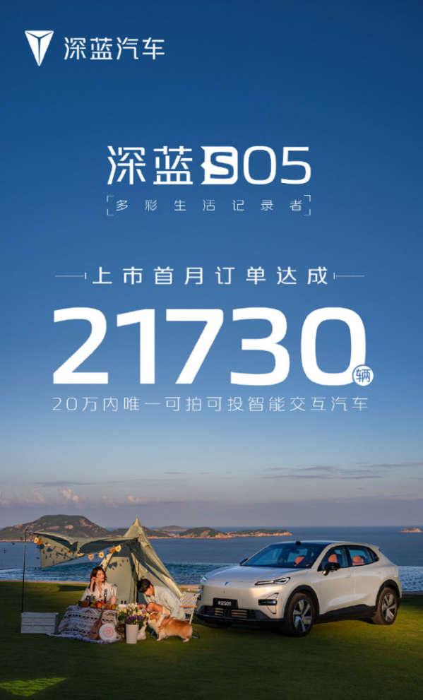 【智车派新闻】近日,智车派注意到,深蓝汽车宣布其全新紧凑型SUV——S05上市首月即斩获了21,730份订单。考虑到深蓝汽车在10月份的交付量达到了27,862台,若S05的所有订单能顺利转化为实际交付,深蓝汽车在11月的交付量有望再创新高。