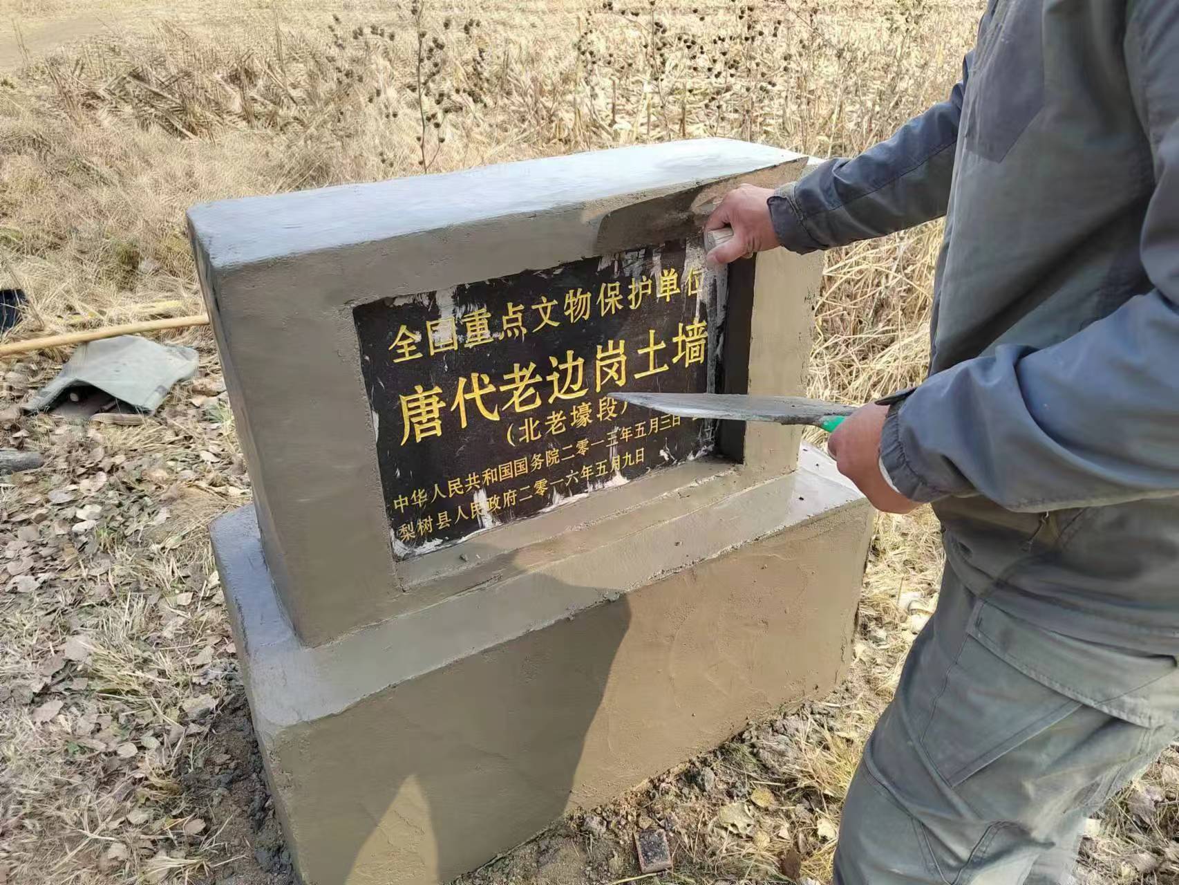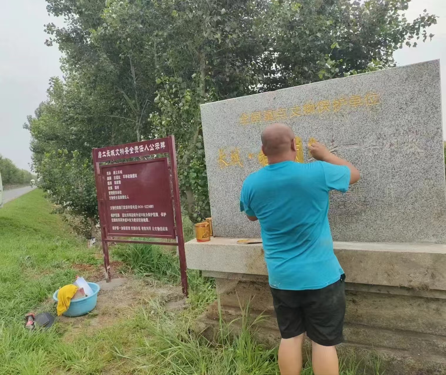 县文广旅局、文物管理所、自然资源局和梨树镇政府等多家单位联合,已完成对北老壕村段违章建筑彩钢房的查处;完成陈边岗屯段土墙界碑附近的沤粪点整改;对姜家店屯段土墙保护范围内的违规建设可移动彩钢房、建设控制地带违规建设的临时垃圾房进行迁移;完成对保护标志牌和保护碑的描红、描金,维护字迹清晰。