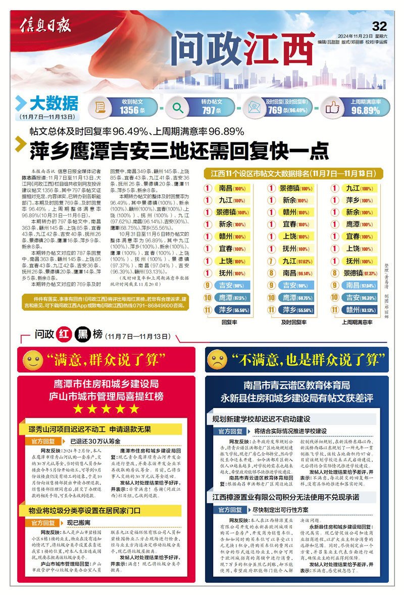 南昌市青云谱区教育体育局、永新县住房和城乡建设局有帖文获差评