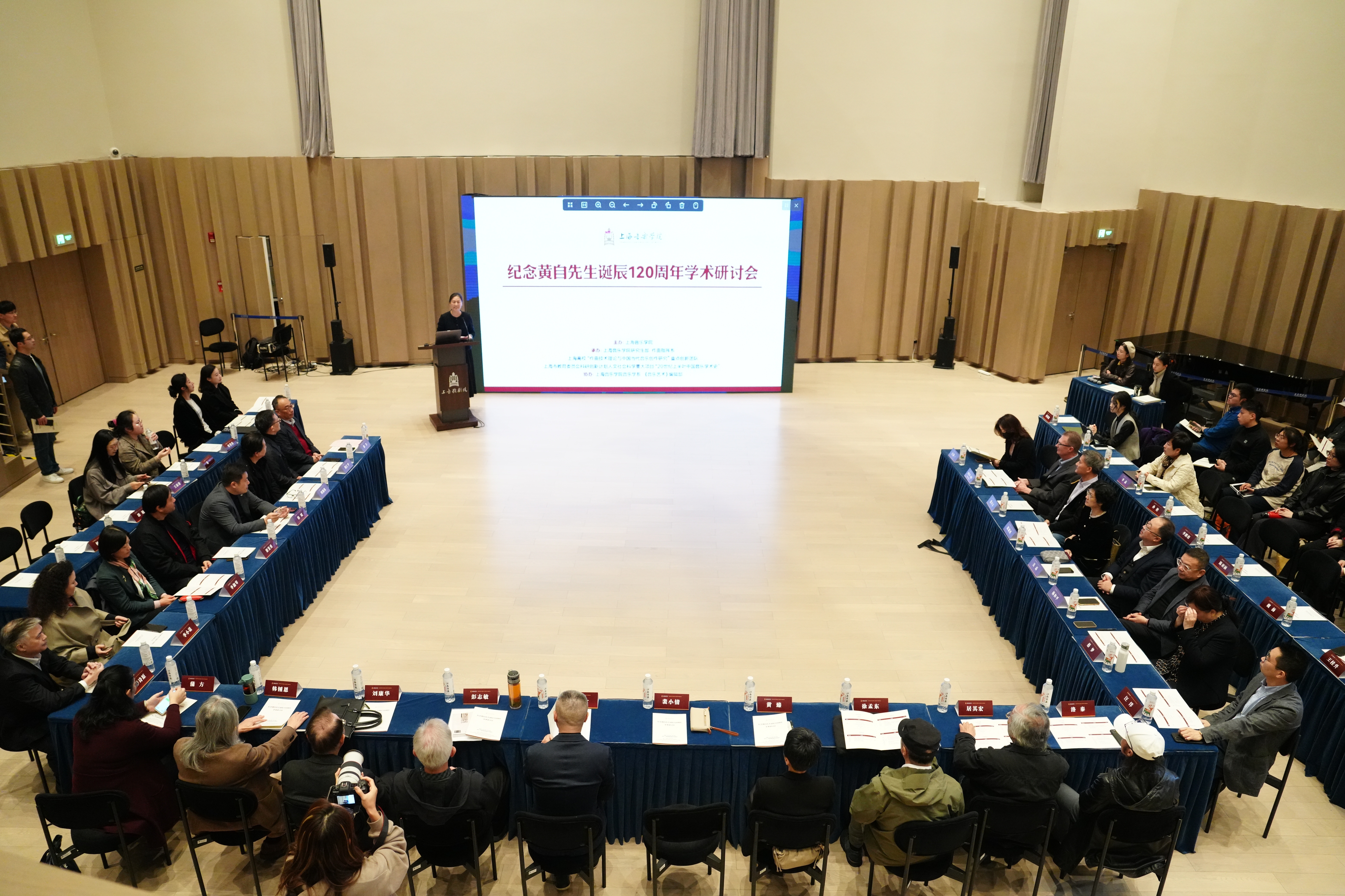 此次研讨会由上海音乐学院主办,研究生部、作曲指挥系、上海高校“作曲技术理论与中国当代音乐创作研究”重点创新团队、上海市教委科研创新计划人文社科重大项目“20世纪上半叶中国音乐学术史”课题组承办,上海音乐学院音乐学系、《音乐艺术》编辑部协办。上午的主旨发言由上海音乐学院作曲指挥系主任周湘林教授、研究生部主任钱仁平教授主持。来自全国的专家徐孟东、刘康华、彭志敏、居其宏、韩锺恩、洛秦、蒲方、汪洋、蔡梦、杨和平、吴磊等围绕黄自音乐创作、黄自音乐教育思想与实践、黄自音乐教育思想对中国音乐教育的启示、黄自研究的学术史,以及与黄自歌曲相关的中国艺术歌曲的创作与传播、中国近现代音乐文学等议题进行了发言。下午的学术研讨由上海音乐学院学报《音乐艺术》副主编李诗原教授,发展规划处处长韩斌研究员、党委宣传部副部长肖阳研究员分别主持。