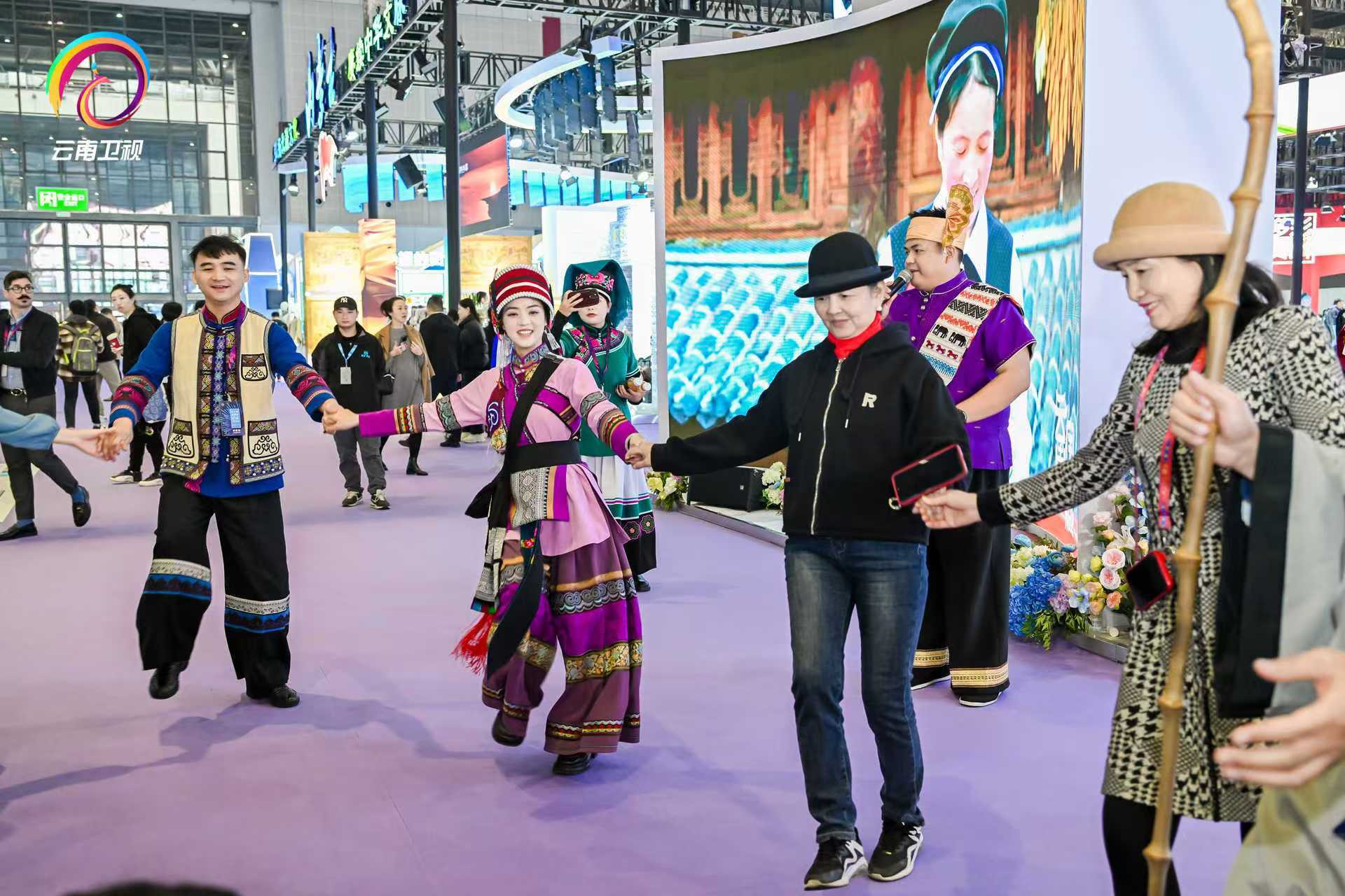 本届长三角文博会上,云南展区热闹非凡。打歌台《云南金曲大家唱》、打跳场《“滇”峰打跳嗨起来》、互动秀《穿越次元奇幻游》等特色活动吸引吸引市民游客纷纷聚拢,共同哼唱动人的曲调,感受着云南文化的独特魅力。偶遇徐霞客、对歌阿诗玛、邂逅孔雀公主和布朗公主等互动游戏,带来全新的艺术体验。