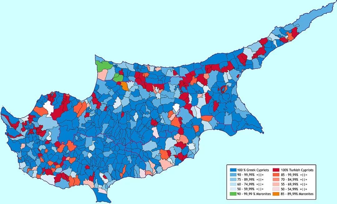 ▲塞浦路斯岛上的不同民族
