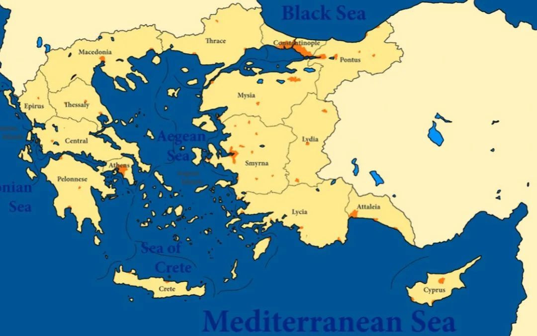 1299年,乌古思部落首领奥斯曼建立政权,控制了亚细亚半岛东部,并不断向西扩张,将生活在小亚细亚半岛西部的希腊人不断向西挤压。乌古思部落随着实力增强不断吸纳融合周边民族,形成土耳其人。
