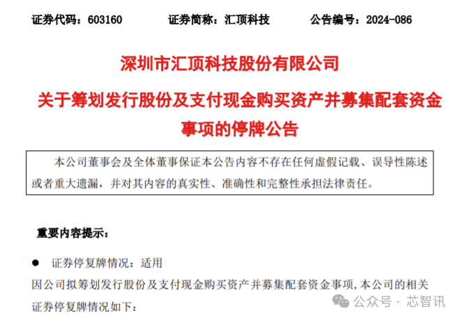 汇顶科技表示,经初步测算,本次交易预计不构成重大资产重组,不构成关联交易,也不构成重组上市。不过,因本次交易尚处于筹划阶段,有关事项尚存不确定性,为保证公平信息披露,维护投资者利益,避免造成公司股价异常波动,将自2024年11月25日开市起开始停牌,预计停牌时间不超过10个交易日。