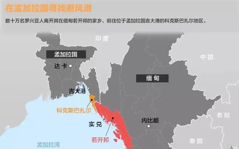 ▲罗兴亚人聚居区(红色)