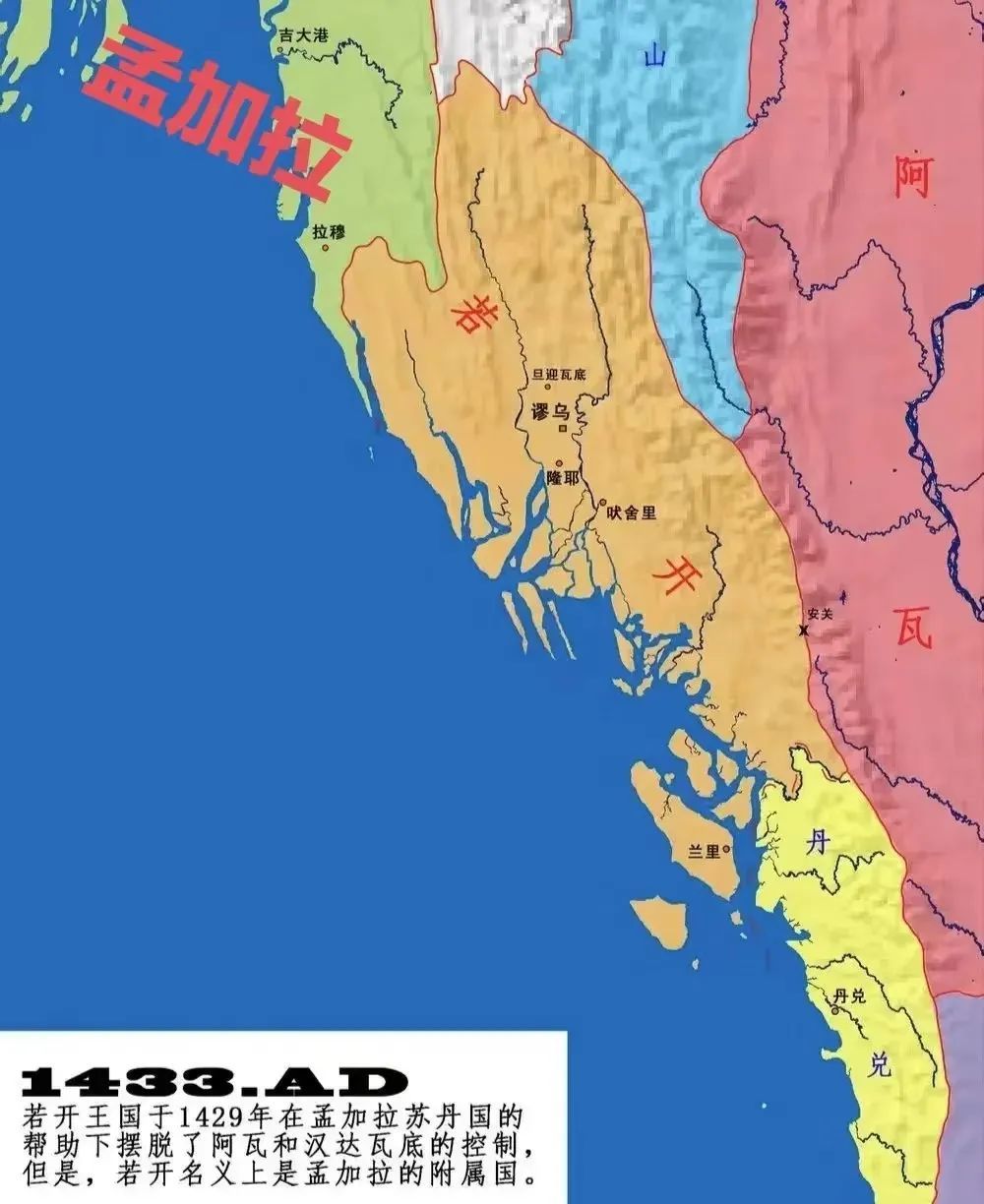 1118年,缅甸首次将阿拉干纳入版图。但在交通不便的古代,若开山脉是缅甸君主推行统治的障碍,阿拉干保有较大自主权。