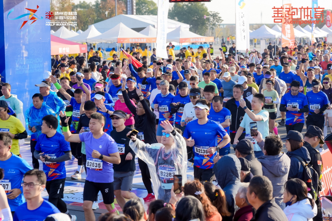 魅力古韵仪征,热血活力奔跑。11月24日上午8:30,江苏银行2024扬州枣林湾半程马拉松在仪征市扬州世博园1号门鸣枪起跑。本次赛事设置了两个比赛项目,半程马拉松(21.0975 公里)、欢乐跑(约5.5公里),共吸引了来自全国各地的8000名选手齐聚仪征,在枣林湾绝美风光的赛道上竞速,畅享奔跑带来的欢乐与激情。