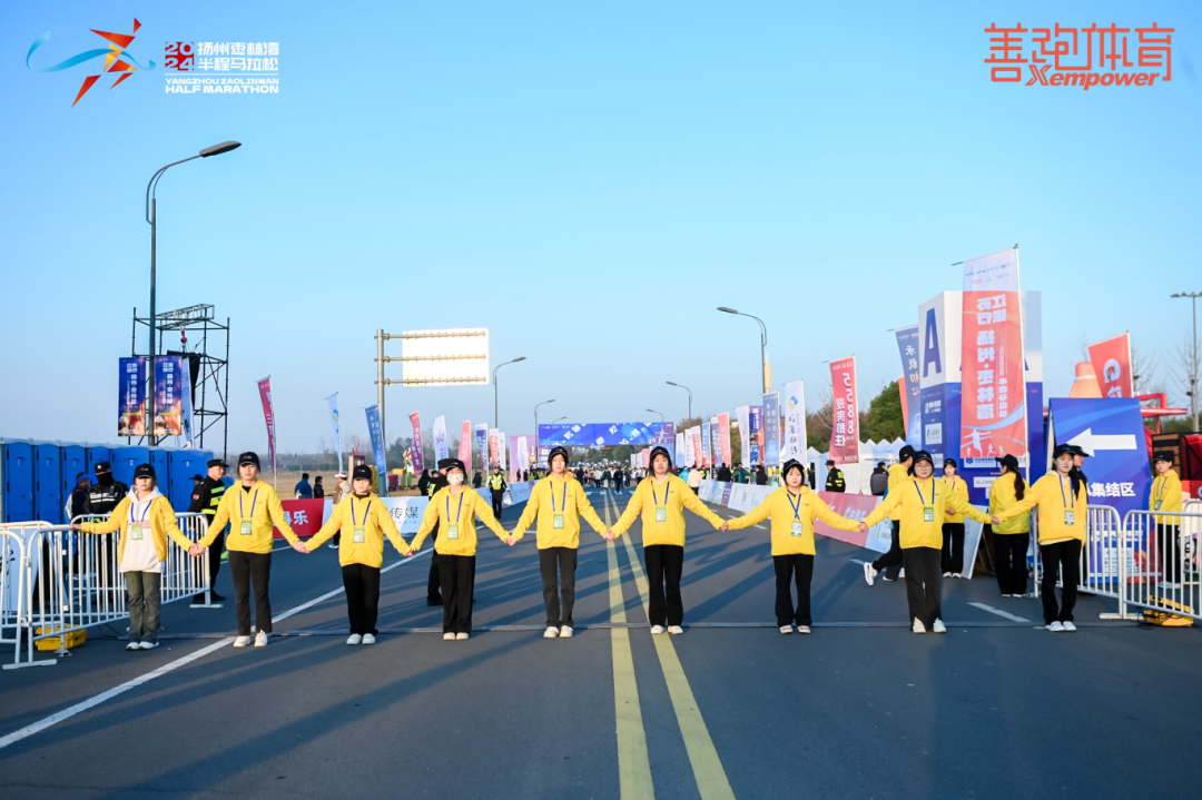 除此之外,还有志愿者866名,分别来自江海职业技术学院、扬州市职业大学瘦西湖校区、仪征技师学院、江苏旅游职业学院。他们朝气蓬勃的脸庞,洋溢着青春的热情,无论是引导人群,还是在途中为选手递水、补给,每一个环节都都彰显出他们训练有素。他们以青春风采和专业精神,为赛事增光添彩,让本次赛事有序且充满温情。