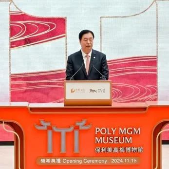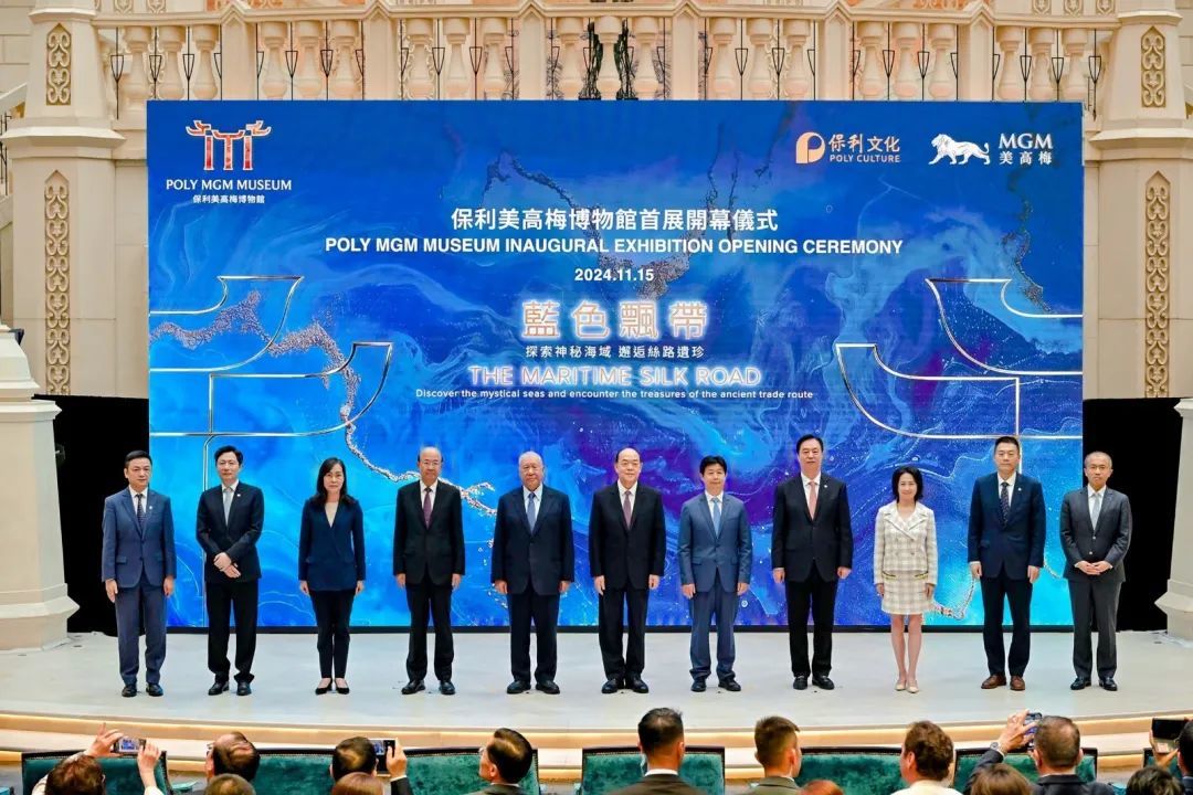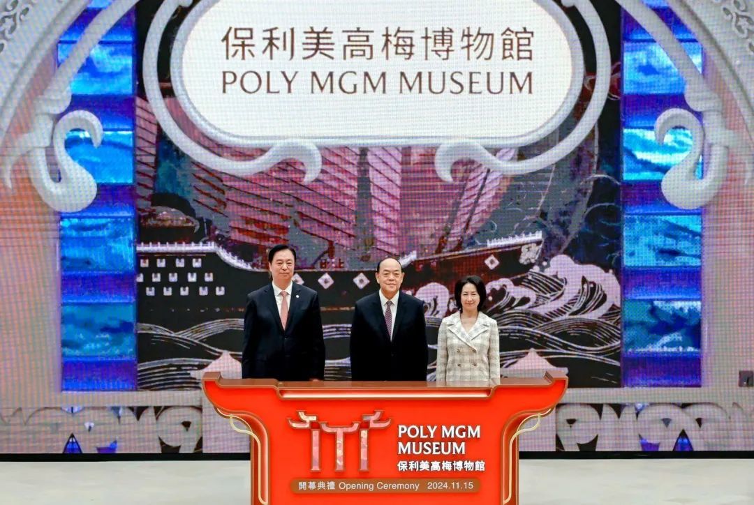 11月15日,保利文化与美高梅联合打造的 “保利美高梅博物馆”在澳门美高梅天幕广场隆重举行开幕式,邀得超过200位重要嘉宾出席,包括澳门特别行政区行政长官贺一诚,中国人民政治协商会议全国委员会副主席何厚铧,美高梅中国控股有限公司董事长及执行董事何超琼,中国保利集团有限公司党委书记、董事长刘化龙,国家运动员鲍春来及武大靖、中港澳影视巨星王祖蓝、李亚男伉俪、何超莲、著名影视男演员赵一博、爱奇艺综艺节目《我的主场》多位成员,包括李世达、巴恩泽、冯桔和蒋嘉轩等,共同见证这一历史性时刻,场面星光熠熠。